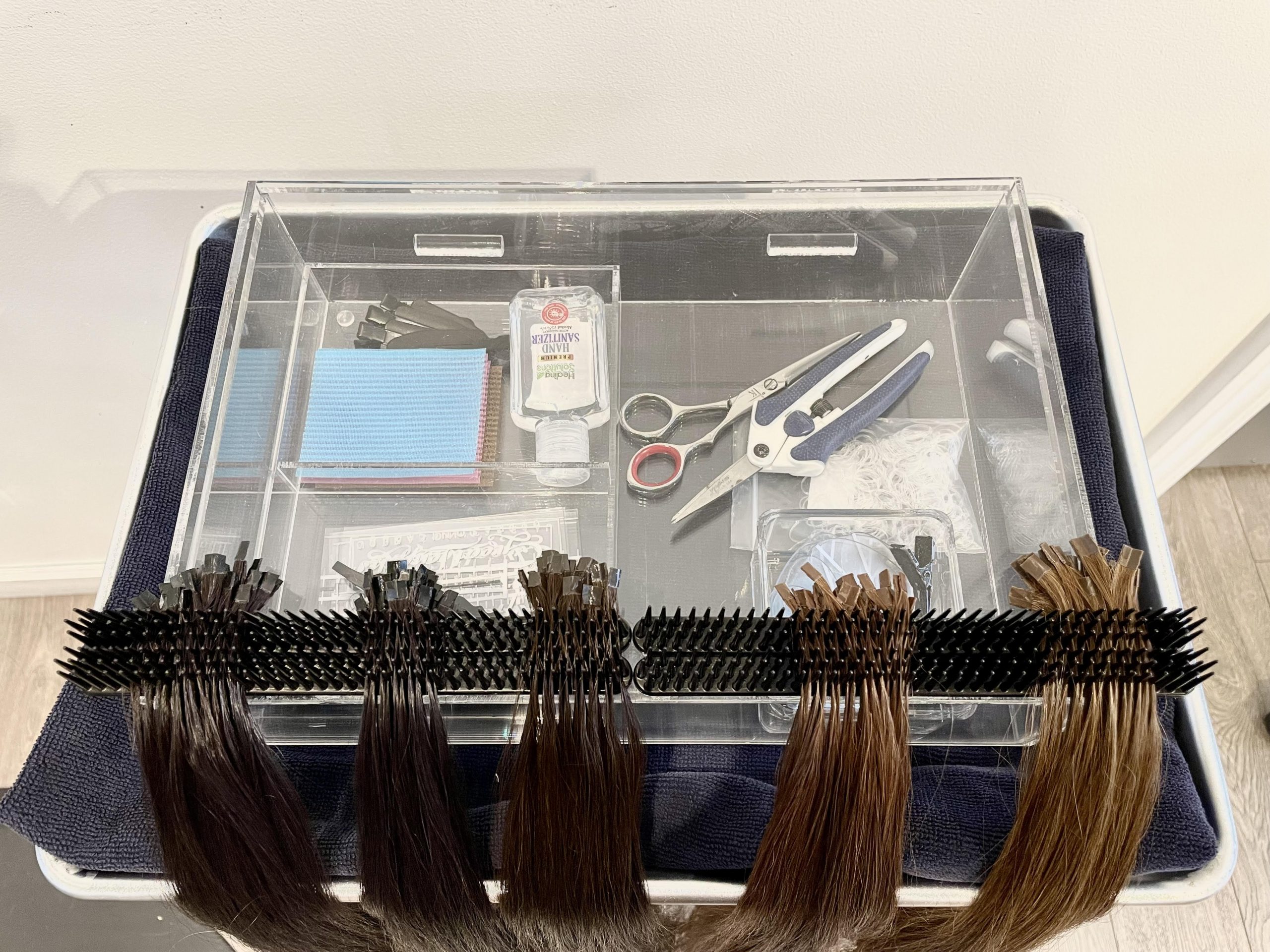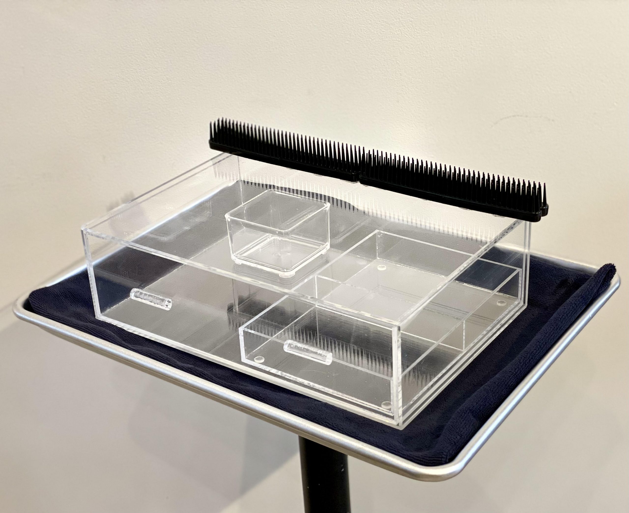 This compartmentalized box helps organize your extensions and hair products. Price includes shipping & handling in the U.S.